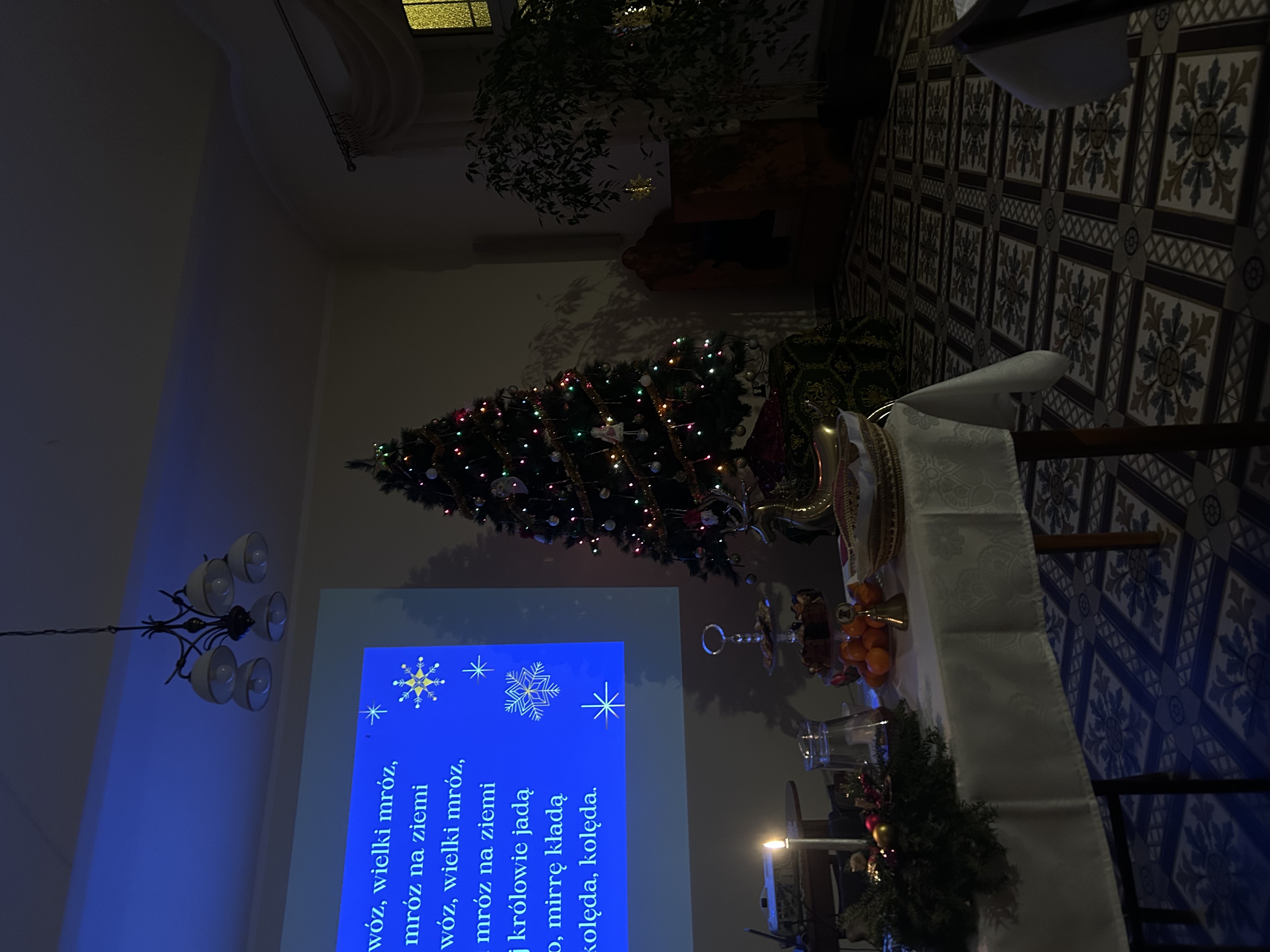 Po Eucharystii odbyła się uroczysta wigilia. Był to czas dzielenia się opłatkiem, składania serdecznych życzeń, osobistych refleksji oraz rozmów o codzienności. Wspólne kolędowanie dopełniło atmosfery bliskości i radości, podkreślając rodzinny charakter tego spotkania.